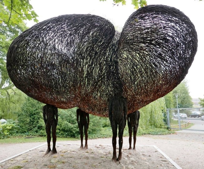 „Man is not an abundance of the earth“, sagt der Künstler. Der Mongole Ochirbold Ayurzana hatte übrigens weder ein Herz noch einen Vogel im Sinn, sondern eine riesige Wolke an Informationen, die unsere globalisierten Köpfe flutet und unser Bewusstsein verändert. Offen bleibt, ob „abundance“ besser mit „Überfluss“ oder mit „Reichtum“ zu übersetzen ist. Wer sich selbst ein Bild machen will: Die Arbeit aus Stahldraht ist noch bis zum 8. Oktober auf der NordArt im schleswig-holsteinischen Büdelsdorf zu sehen.