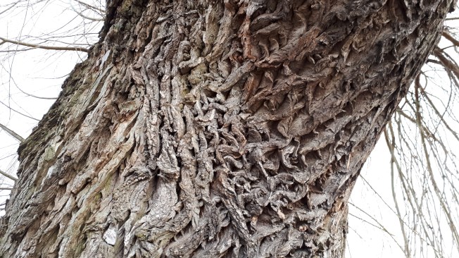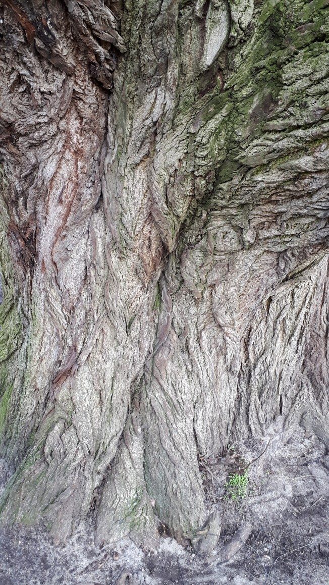 • Ich hatte das „grüne Buch“ mal bei einer Lesung kennengelernt und blättere darin gelegentlich gern herum – so wie im „Ewigen Brunnen“, den du ja auch kennst. Bei der „reizüberfluteten Sicht der Dinge“ hatte ich konkret die Situation vor Augen, eine viel begangene Strecke gar nicht mehr wirklich wahrzunehmen, es sei denn, es ereignet sich dort gerade etwas ganz Außergewöhnliches. So ein Gefühl von Langeweile und Übersättigung: Kenne ich schon… nichts Neues unter der Sonne… fotografieren?… och nö, das Motiv habe ich schon tausendmal auf dem Rechner… Passiert mir Gott sei Dank nicht dauernd. An den beiden gezeigten Bäumen bin ich sicher mehr als tausendmal vorbei gegangen. Aber genau so hatte ich ihr faltiges Gesicht noch nicht gesehen.