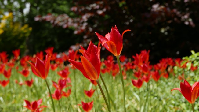 Das freut mich, Myriade! Ich male selbst nicht, aber ich denke, ich verstehe deinen Ansatz gut. Nicht zuletzt weil ich beim Fotografieren selbst eher intuitiv unterwegs bin. Ich lasse mich gern von Farben und Formen leiten, und vom Licht natürlich. Und immer wieder, wenn ich entscheide, das Motiv noch einmal aus anderen Perspektiven einzufangen, stelle ich hinterher fest, dass der erste Blick „der beste“ war oder doch das, was ich sah, am besten ausdrückt. Bei dem ersten Foto zum Beispiel hatte mich schon aus beträchtlicher Entfernung dieses schier unglaubliche Rot der Tulpen angezogen. (Keines der Fotos dieses Beitrags ist übrigens bearbeitet. Nur beim zweiten Bild habe ich des Seriencharakters wegen aus einem Hoch- ein Querformat gemacht.) Dazu das Grün der Stängel und Blätter, der Rotstich des dunklen Laubs im Hintergrund… nichts davon bewusst gedacht sondern erfasst. Ein bisschen gedacht habe ich erst anschließend, als ich Stimmen suchte, die die Aussage der Bilder noch verstärken könnten.