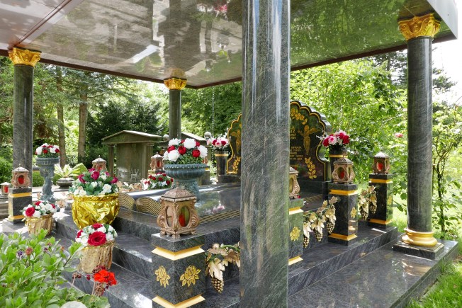 Wow! Ich habe ja schon manch ein Grab gesehen, aber so viel Prunk wohl noch nie. Gleich fünf goldene Kronen glänzen auf dem baldachinartigen Dach der letzten Ruhestätte von Trojano K., eine große in der Mitte und in jeder Ecke eine kleinere. Der Dachhimmel beschirmt eine riesige Granitplatte in der Form eines aufgeschlagenen Buchs. Die tonnenschwere Platte ist über und über mit Blumengestecken und Grablichtern bedeckt.