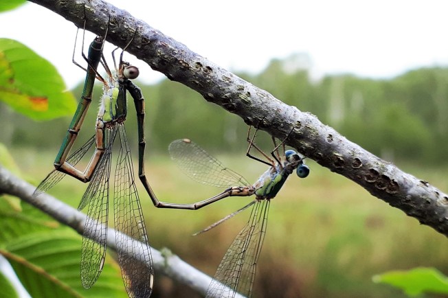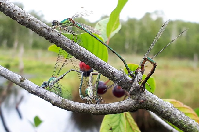 Danke schön. Ich hatte meine Schwierigkeiten, weil die Tierchen so klein sind und der Zweig ein gutes Stück über den Moorsee ragt.