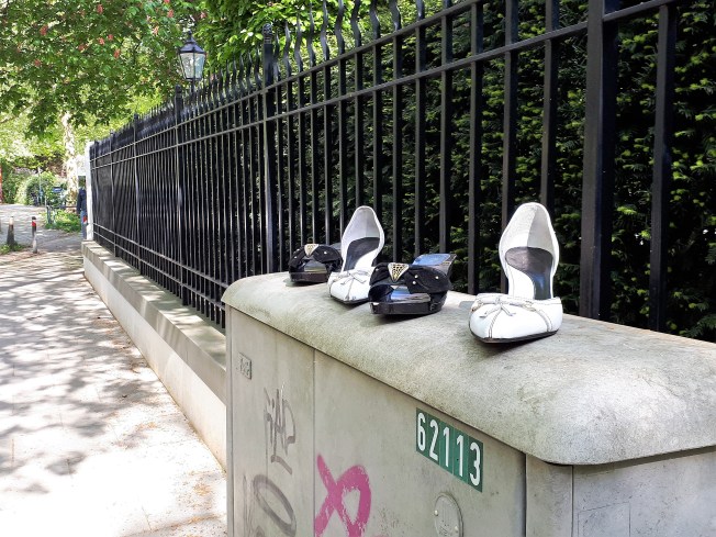Die Begegnung des WASDRIN und des Hemdes habe ich der Sammlung von Ganzkurzgeschichten und Wünschelbildern des Grafikers und Kinderbuchautors Jürgen Spohn entnommen, die 1982 unter dem programmatischen Titel „Ach so“ veröffentlicht wurde. Mein Kiez im Norden Hamburgs scheint ja eher ein Eldorado für Schuh-WASDRINNE zu sein. Erst vor wenigen Monaten erblickte ich vor meinem Fitnessstudio ein verwaistes Trio, schon ruft es gleich um die Ecke: Komm, tanz mit mir. Dance me to the end of love…