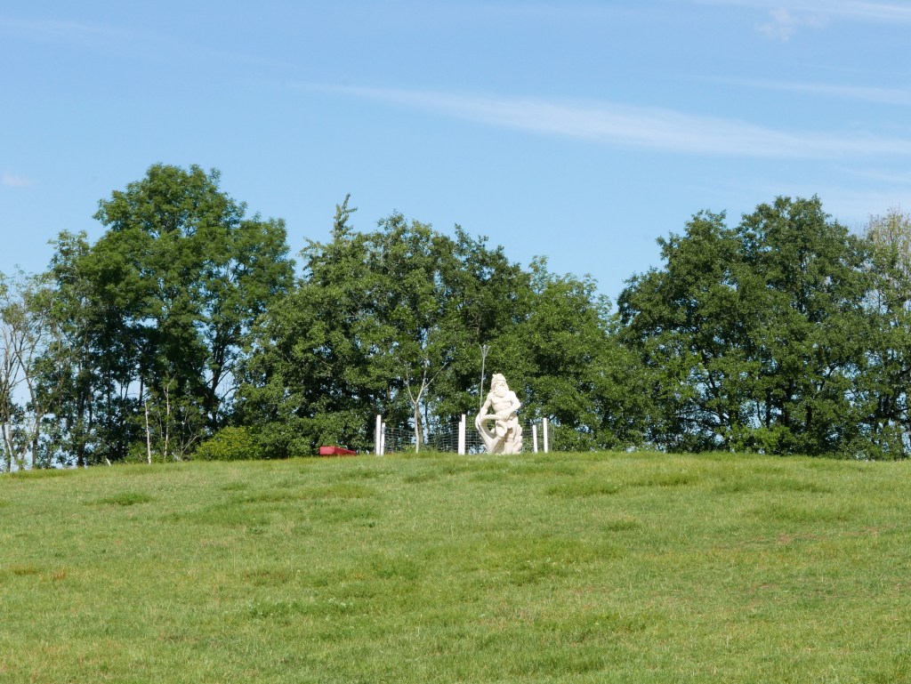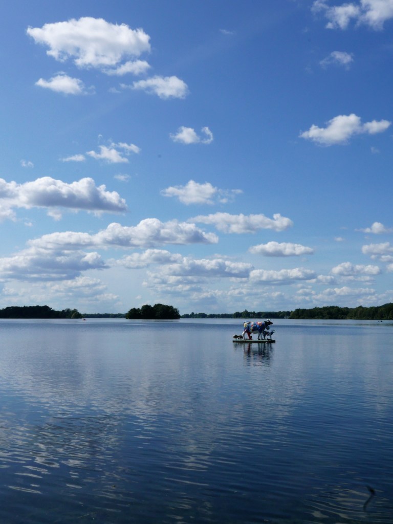 Auf meiner Wanderung durch die Holsteinische Schweiz traf ich den Meeresgott mit seinem Dreizack auf einer Wiese sitzend an. Das fand ich auch ziemlich merkwürdig. Beinah so merkwürdig wie die Kühe, die unter einer Herde Schäfchenwolken friedlich im See grasten.