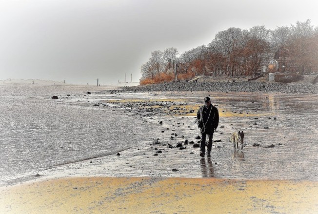 Seit Tagen liegt unverkennbar Herbst in der Luft. Aber gestern warf der Sommer noch einmal den Turbo an. Ein Tag zum Helden-Zeugen, wie meine Großmutter zu sagen pflegte. Kurz entschlossen bestiegen die Freundin und ich (und noch zwei, drei andere) nach Feierabend die Fähre Richtung Elbstrand.