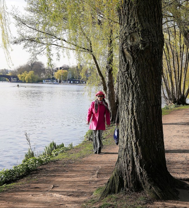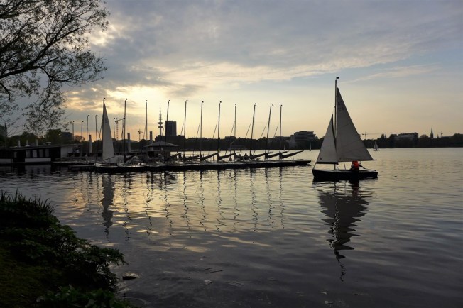 Endlich Sonne! Da kann sich selbst die alte Tante Alster ein verträumtes Lächeln nicht verkneifen. Kommt gut durch die Woche!