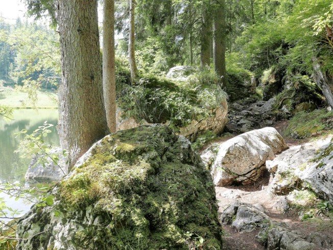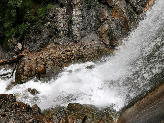 Das entsprach so gar nicht dem, wofür ich gekommen war. Und ich brauche so viel Nass von allen Seiten auch bestimmt nicht so bald wieder. Aber ganz allmählich – ich war selbst erstaunt – begann ich, dem Reiz der Wasserspiele zu erliegen. Im Tal, in der Klamm, im Tobel. Am steinernen Hang, der zum Wasserfall wurde. Wenn schon der Sommer streikte – ich habe mitgespielt.