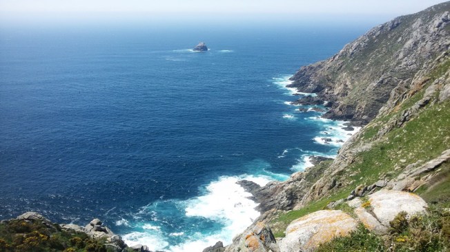 Ich ging dann doch noch weiter: vom Ende der Welt nach Norden, die Costa da Morte zur Linken. Wie liebe ich Raúls eigenwillige Erklärung für den Namen des Küstenstreifens im äußersten Nordwesten der iberischen Halbinsel. „Todesküste“ habe man ihn nicht etwa wegen der vielen Seefahrer genannt, die in der rauen See und an den Klippen ihr Leben ließen. Ach, staunte ich zwischen zwei Bissen Toastbrot. Sondern? Na, weil doch Abend für Abend die Sonne über dem Meer starb… Irgendwo in Raúls Genen muss ein Rest des Sonnenkults überlebt haben, der in der Gegend unter Kelten wie Römern so viele Anhänger hatte. Heilige Steine wie der Ara Solis, der „Sonnenaltar“ auf dem Monte Facho oberhalb des Leuchtturms von Kap Finisterre erinnern bis heute daran.