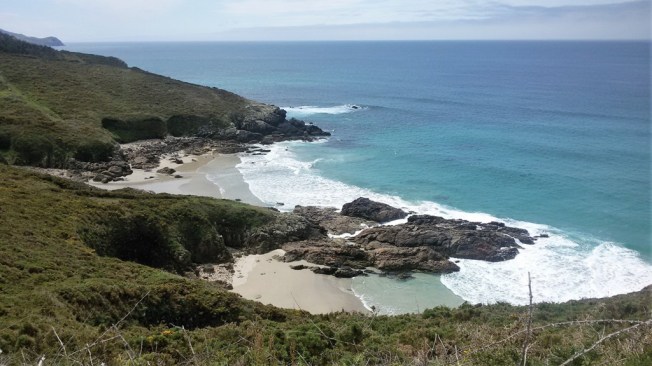 Nur noch ein paar Kilometer sind es bis Muxía. Wie verlockend der kleine Pfad aussieht. Bloß weg von der Straße! Hinein in die Büsche, bis es gar keinen Weg mehr gibt. Zuletzt folge ich Hufspuren in der Annahme, dass die Pferde einen Reiter getragen haben, aber die Tiere sind offenbar frei herumgelaufen. Die Spuren enden an einem kleinen Wasserlauf. Egal. Das Meer und die Straße sind ja weiterhin zu hören, geben Orientierung. Der alte Mann in den Dünen staunt nicht schlecht, als ich aus dem Dickicht breche. Meine Frage, ob ich wohl nach Belieben zur Straße hinaufklettern könne, bejaht er grinsend. Wir seien schließlich nicht in Nordkorea. Immer vorausgesetzt natürlich, ich könne. Steil ist es, da hat er Recht, aber kein wirkliches Hindernis für eine, die gerade eine mehrwöchige Wanderung hinter sich hat.