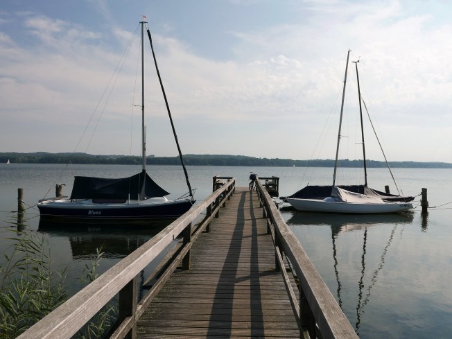 Sehr still war dieses Sarau, eigentlich: Groß Sarau, ganz im Norden des Sees. Ein paar landwirtschaftliche Gebäude. Die „Alte Meierei“, inzwischen ein Dorfladen, der aber gerade Betriebsferien hatte. Eine Taverne am See, offenbar für länger geschlossen. Der Dorfkrug, der auch erst später am Tag öffnen würde. Feuerwehrgerätehaus und Gemeindebüro, ebenfalls zu. Ein paar Häuser neueren Datums, vielleicht Ferienhäuser. Keine „Margaret“ weit und breit, leider. Die Tankstelle an der Hauptstraße immerhin hatte geöffnet. Auf dem Steg am See verzehrte ich ein Eis, das ich im Shop der Tankstelle gekauft hatte.