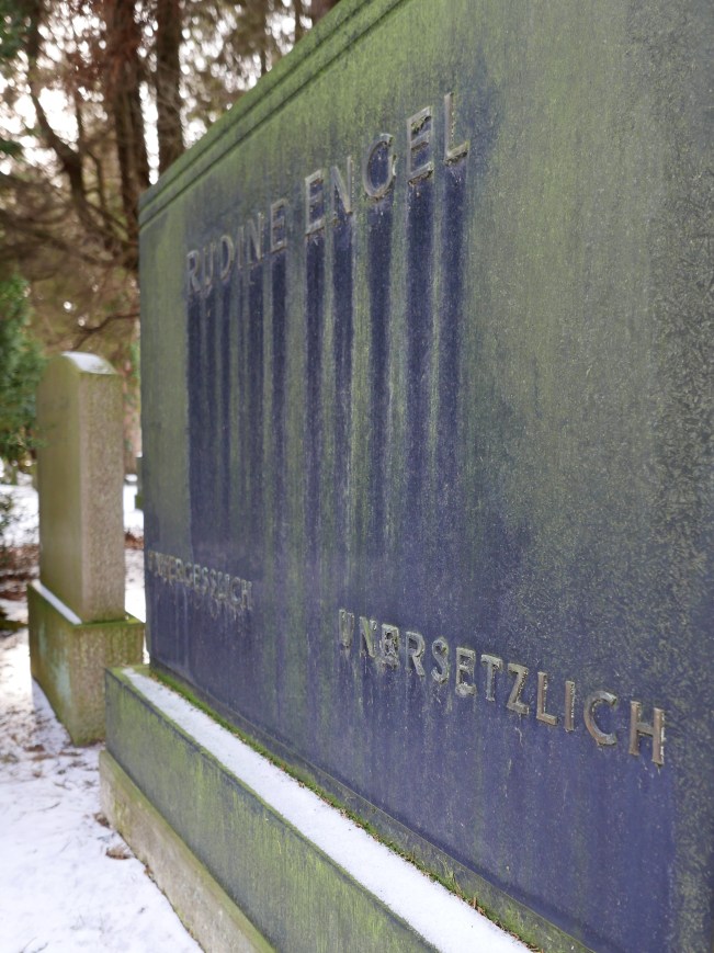 Kennst du das auch? Du läufst irgendwo draußen herum, und von einem Moment auf den anderen bist du mitten in einer Serie? Nicht als Darsteller, nein. Es ist mehr so, dass du plötzlich Muster erkennst, die du zuvor nicht gesehen hast. Mir geht das ziemlich oft so. Ich glaube, meine Augen mögen Strukturen. Am Wochenende zum Beispiel streifte ich über den jüdischen Friedhof in Hamburg-Ohlsdorf, von dem ich hier schon erzählt habe. Ohne besondere Absicht außer vielleicht der, das herrliche Winterwetter an einem ruhigen Ort zu genießen. Und … zoom! fand ich mich in einer phantastischen Freiluft-Galerie wieder, in der Wind und Wetter die Pinsel geschwungen hatten, dass es eine Lust ist.