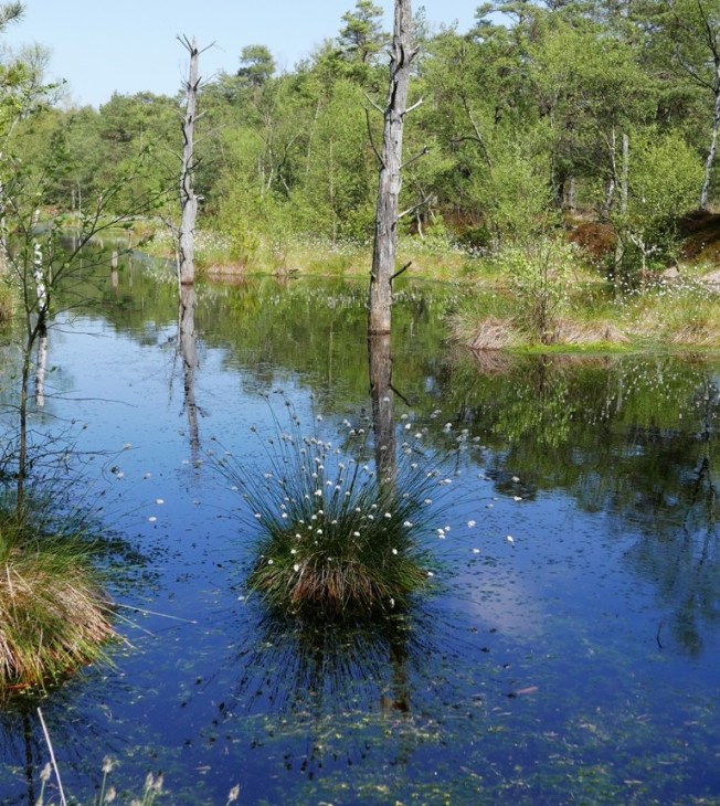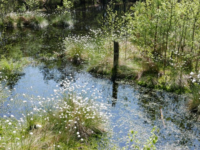 P1070405Die innere und die äußere Spur liefen nicht synchron. Müde und gedankenschwer tappte sie über die Holzbohlen. Die Landschaft erschien ihr flacher als sonst, geradezu zweidimensional, und irgendwie überbelichtet. Ein überraschend kräftiger Wind kräuselte die Oberfläche der Tümpel zur Linken und zur Rechten, raubte auch ihnen die gewohnte Tiefe. Dem Moor war das egal. Es war einfach da. Nach einer Weile, die ihr lang vorkam, entdeckte sie das Archipel der Sonneninseln.