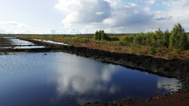 Ein zehn Kilometer langer Wanderweg führt einmal rund ums Himmelmoor und auch noch ein Stück durch Wald und Feld. Zum Teil folgt er den Gleisen der Torfbahn. Herrlich, wie der schwarzbraune Grund bei jedem Schritt schwingt…