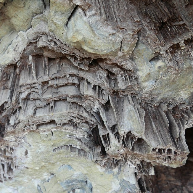 P1080363Mehr als 50 fossile Stämme sind dort zu bestaunen, die vor sagenhaften 250 Millionen Jahren von einer gewaltigen Flut entwurzelt und dorthin gespült worden sein sollen. Sand und Schlamm schlossen die Bäume luftdicht ab, so dass sie nicht vermodern konnten, eindringendes kieselsäurehaltiges Wasser ließ sie versteinern. Die darüberliegenden Gesteinsmassen wurden durch Erosion im Laufe von Jahrmillionen abgetragen, bis die Stämme wieder sichtbar wurden: fürs Auge auch heute noch eindeutig Holz (einmal sehen können, was sie einst sahen!), für die prüfende Hand – hart wie Granit.