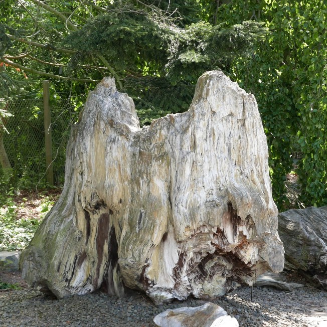 Bummelig 27 bis 30 Millionen Jahre alt ist das verkieselte Stück Stamm einer Sumpfzypresse, das man im Botanischen Garten in Hamburg bestaunen kann. Un-fassbar, im Wortsinn. Was ist schon eine Million mehr oder weniger? Für einen Augenblick wehen mich die Erinnerungen und der Atem der Ewigkeit in einen versteinerten Wald im Südwesten Afrikas, in dem der Prozess des Steinwerdens bereits vor 250 Millionen Jahren begonnen haben soll.