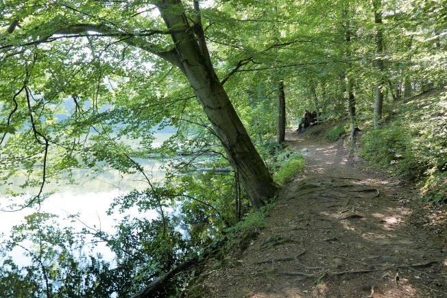 Ich habe vom Waldparkplatz an der Nordseite des Schmalsees, also praktisch von der Eulenspiegel-Stadt Mölln aus eine große Runde um Schmalsee, Lütauer See, Drüsensee und das Hellbachtal mit Krebssee, Lottsee und Schwarzsee gedreht. Einer geht noch, dachte ich ein ums andere Mal, zumal die Bäume reichlich Schatten spendeten und an kühlem Nass für die qualmenden Füße ja auch kein Mangel bestand.