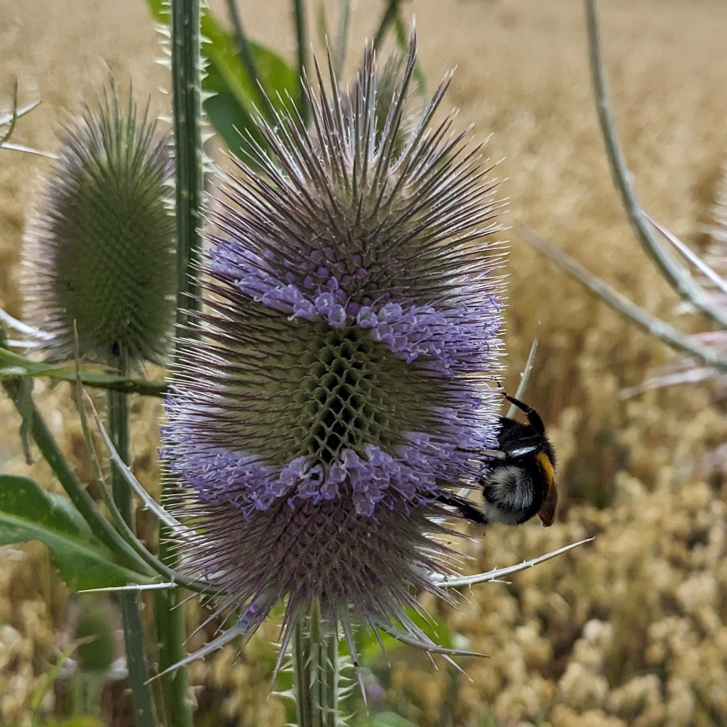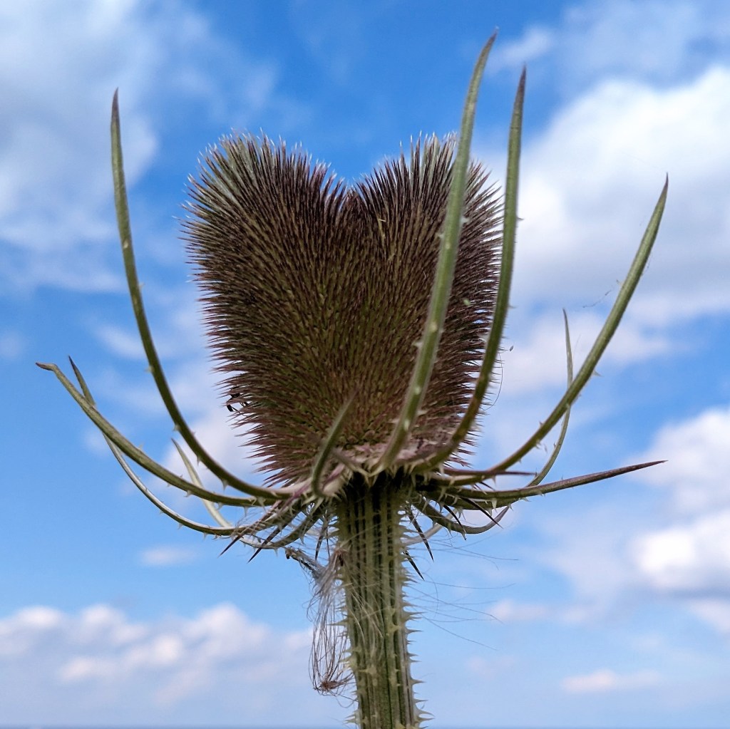 Weit schweift der Blick über die Bucht. Weit öffnet die große Distel ihr stachliges Herz.