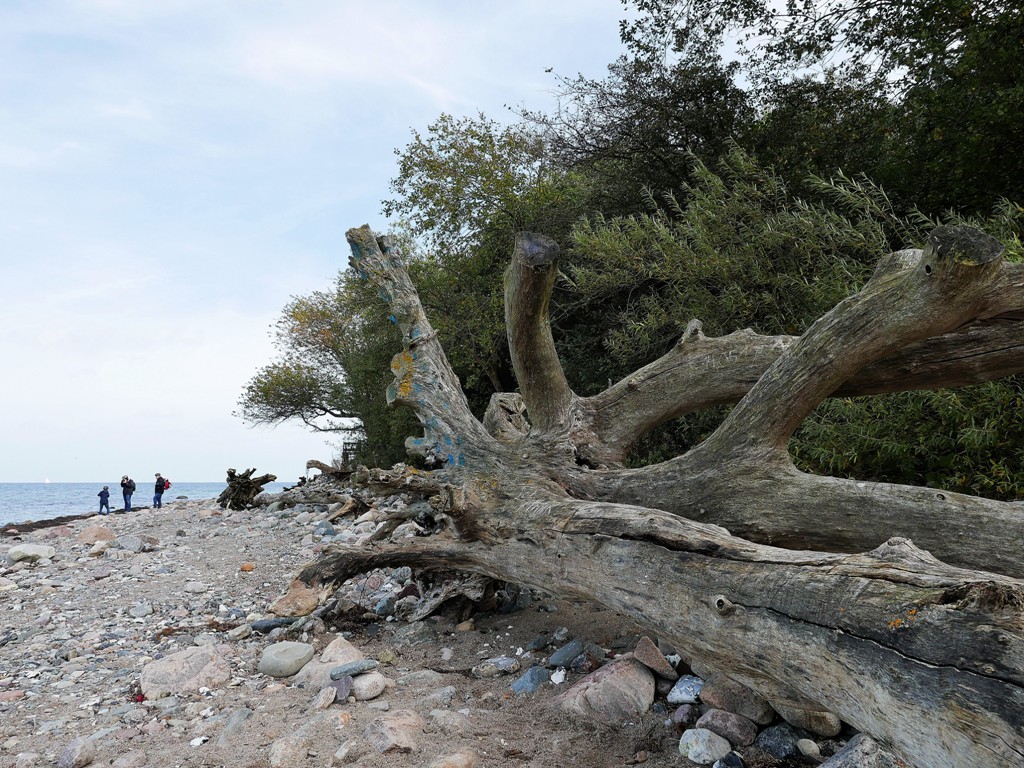 Unten am Wasser zeugen entwurzelte Baumstämme und herabgestürzte Geschiebeblöcke von der Kraft der Herbst- und Winterstürme, von peitschendem Wellenschlag und Starkregen. Die aus dem Kliff herausgewaschenen Sandmassen werden durch Strömungen parallel zur Küste sowohl nach Travemünde als auch in die innere Lübecker Bucht gespült, wo sie Strandurlauber-Herzen höher schlagen lassen.