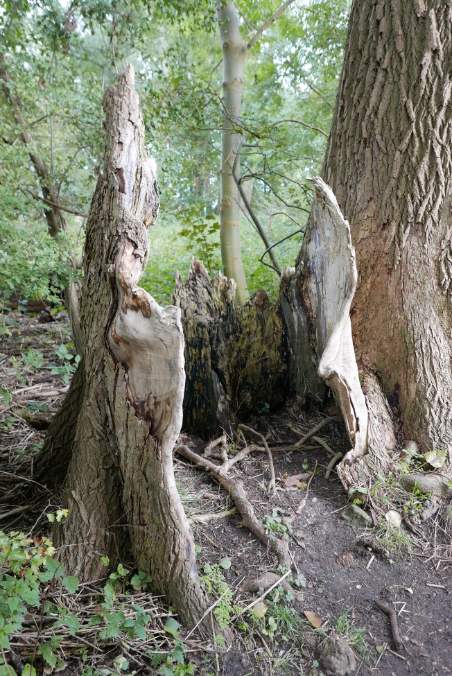 An die Water Houses gleich gegenüber kommt man leider gerade nicht so dicht heran, nicht nur wegen des Wassers drumherum. Andererseits entwickelt der dezent weiß-grün-blaue Gebäudekomplex hinter gelben und rot-weißen Absperrungen, die die Trasse für die Baufahrzeuge markieren, eine Ästhetik ganz eigener Art. Und wer das schöner findet, tritt einfach ein paar Schritte zur Seite und holt sich vielleicht einen roten Kran-Arm vor die Fassade. Nirgends wird man zurzeit so leicht selbst zum Requisiteur (und zum Statisten) wie auf dieser Bühne. An der Neuhöfer Straße gleich neben dem Energiebunker wird das Stück übrigens als Schattenspiel aufgeführt, jedenfalls wenn die Sonne scheint. Wohnungsbau hinter der Visionsplane…